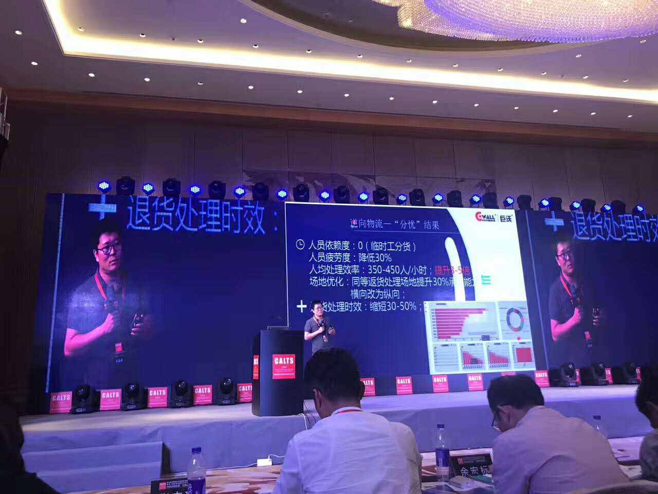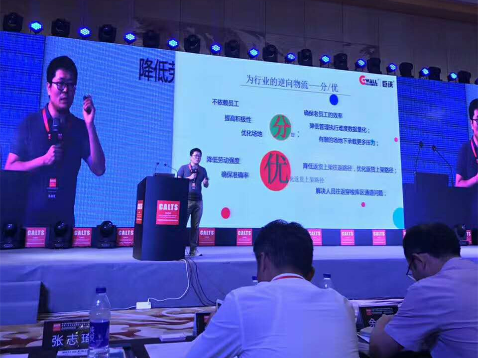 巨沃首席顧問(wèn)馮濱先生受邀在現(xiàn)場(chǎng)演講,講述十余年來(lái)巨沃致力于倉(cāng)儲(chǔ)解決方案智慧化進(jìn)程中積累的經(jīng)驗(yàn)以及取得的成果。講述《“零庫(kù)存”趨勢(shì)下的倉(cāng)儲(chǔ)物流服務(wù)與價(jià)值》。馮總著重講述了鞋服行業(yè)退貨難點(diǎn),首次提出“逆向物流”觀點(diǎn),將商品上架理論融合到退貨流程,另辟蹊徑在退貨難的泥淖中探索出一片新天地。